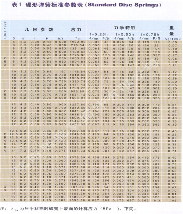 3.用同样的碟形弹簧采用不同的组合方式,能使弹簧特性在很大范围内变化。可采用对合、叠合的组合方式,也可采用复合不同厚度,不同片数等的组合方式。